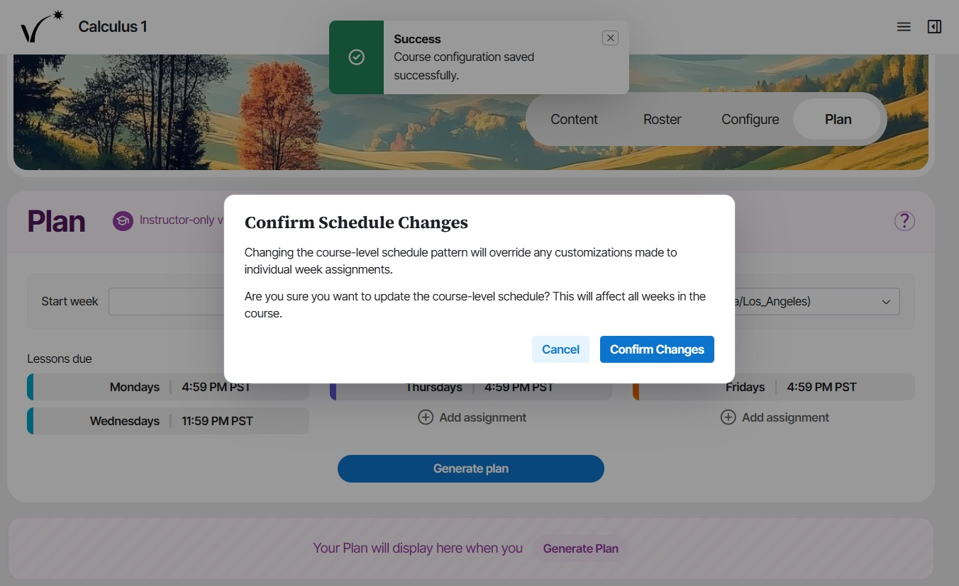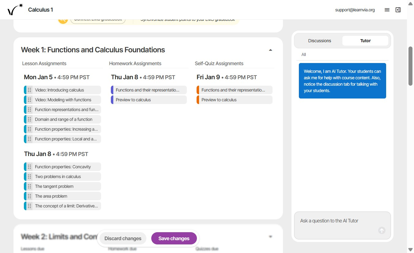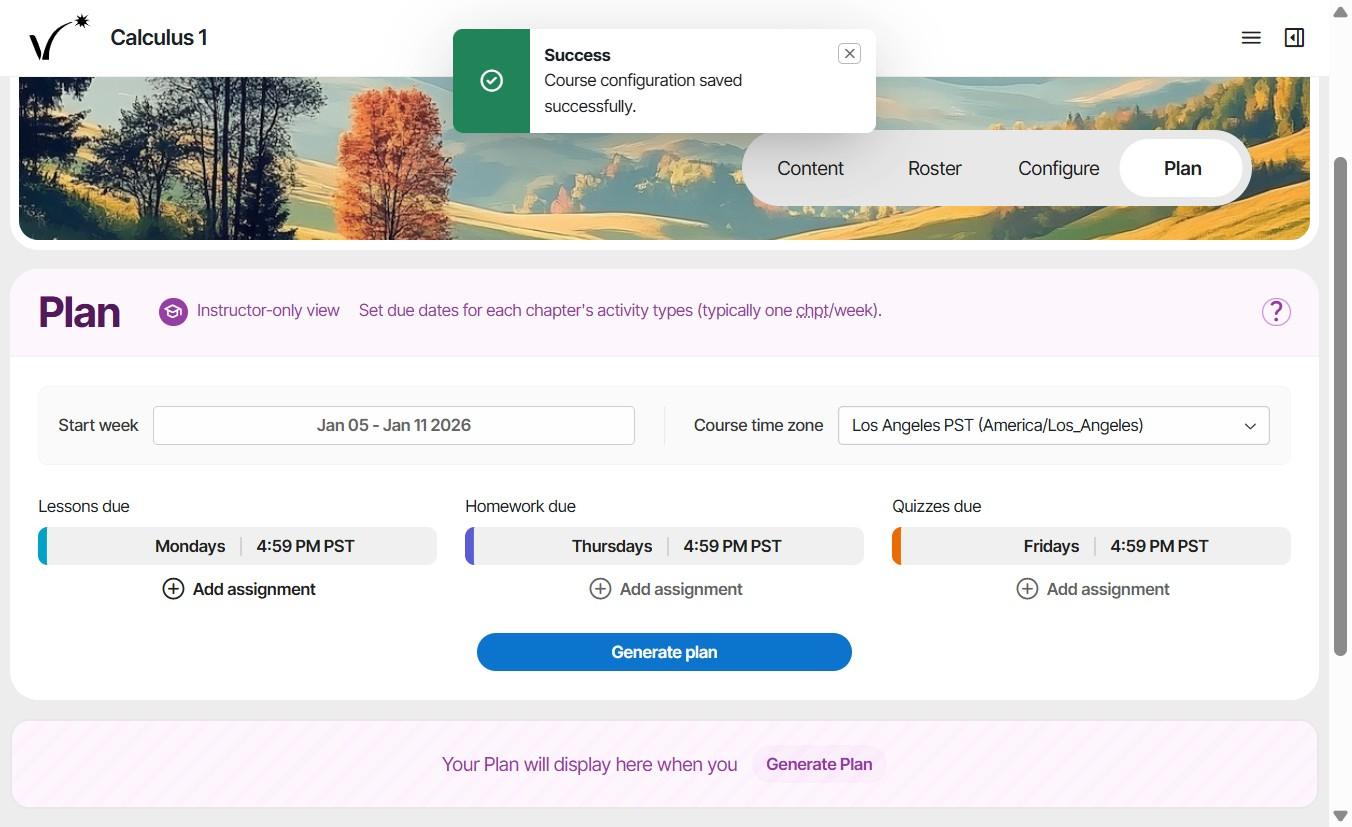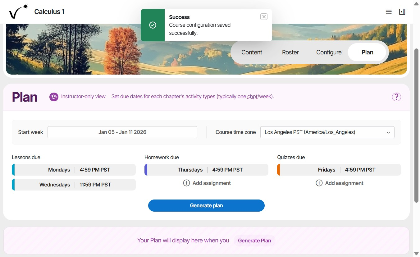 - Select weekly due dates and times for lessons, homeworks, and quizzes.