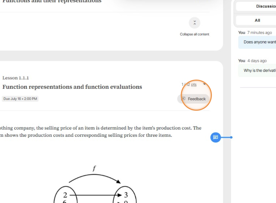 To provide lesson-specific feedback, use the feedback button within the lesson view.