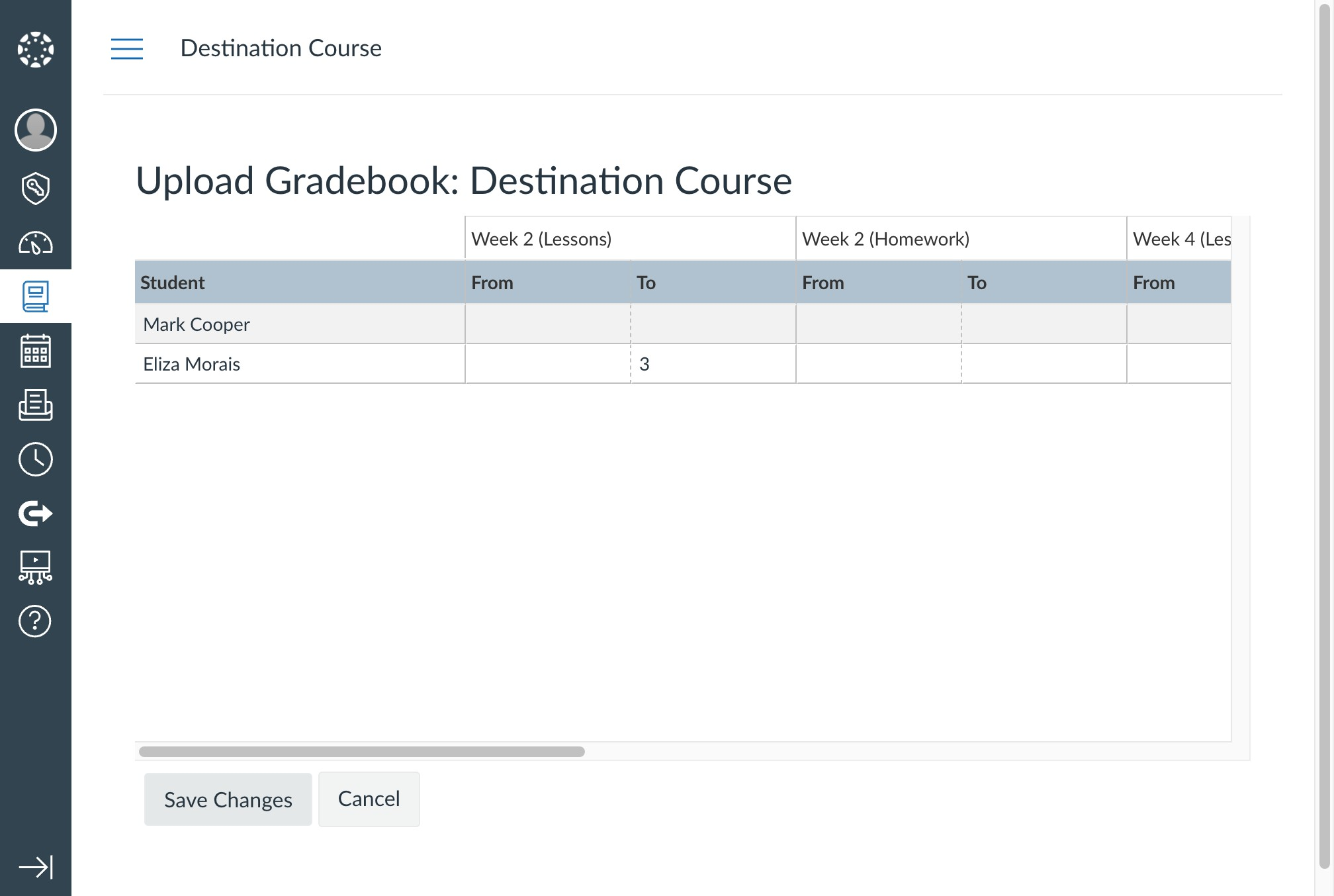 9. The next page will show you what information will be imported into the Gradebook. Click "Save Changes".
